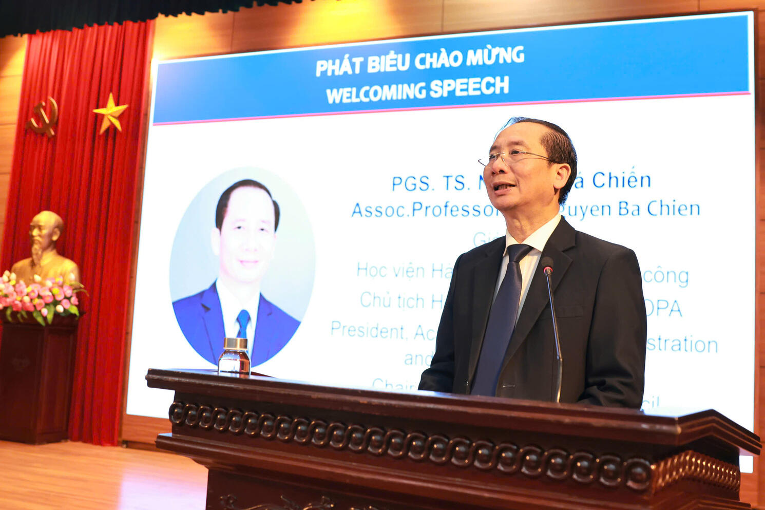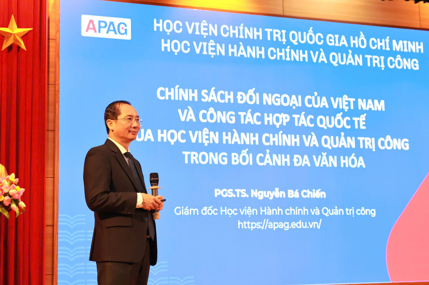 Assoc. Prof. Dr. Nguyen Ba Chien delivering the opening remarks at the seminarDuring the plenary session, Assoc. Prof. Dr. Nguyen Ba Chien presented a paper titled “Viet Nam’s Foreign Policy and International Cooperation of the Academy of Public Administration and Governance in a Multicultural Context” The paper analyzed the rapidly changing global landscape characterized by strategic competition, digital transformation, value chain disruptions, and global challenges, thereby identifying new requirements for state governance and foreign policy-making. Accordingly, Viet Nam’s foreign policy is shifting from a mindset of “expanding cooperation space” to a strategic approach based on competency, centering on enhancing national internal strength and viewing integration as a means to strengthen institutional capacity, governance, and human resources.