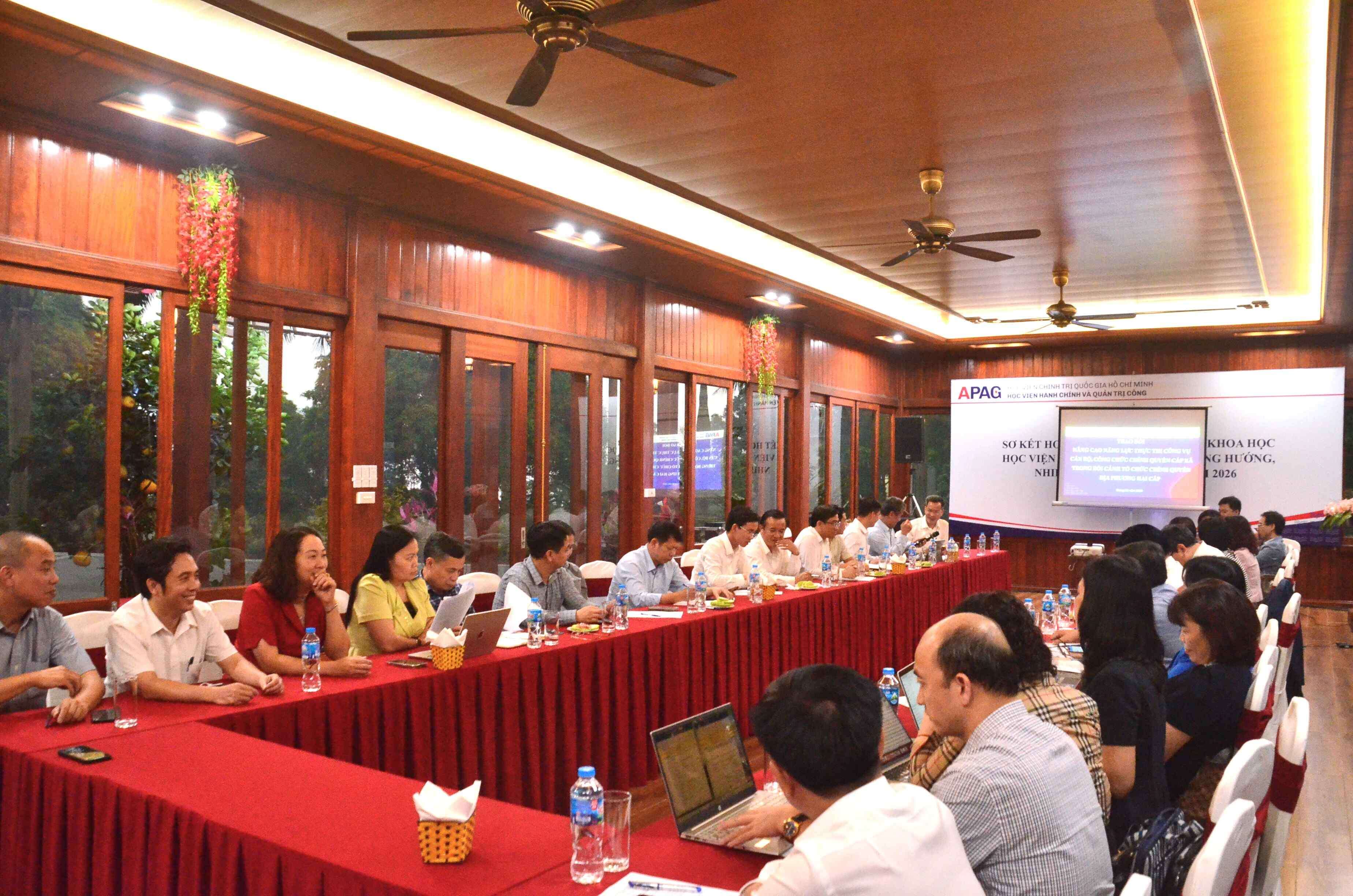 Attending the session from the Ho Chi Minh National Academy of Politics were: Assoc. Prof. Dr. Dinh Ngoc Giang, Director General of the Department of Organization and Personnel; Assoc. Prof. Dr. Tran Thanh Giang, Chief of Office; and Dr. Nguyen Xuan Truong, Director General of the Department of Planning and Finance. Representing the Academy of Public Administration and Governance were the Vice Presidents of the Academy and leaders of units under and affiliated with the Academy.