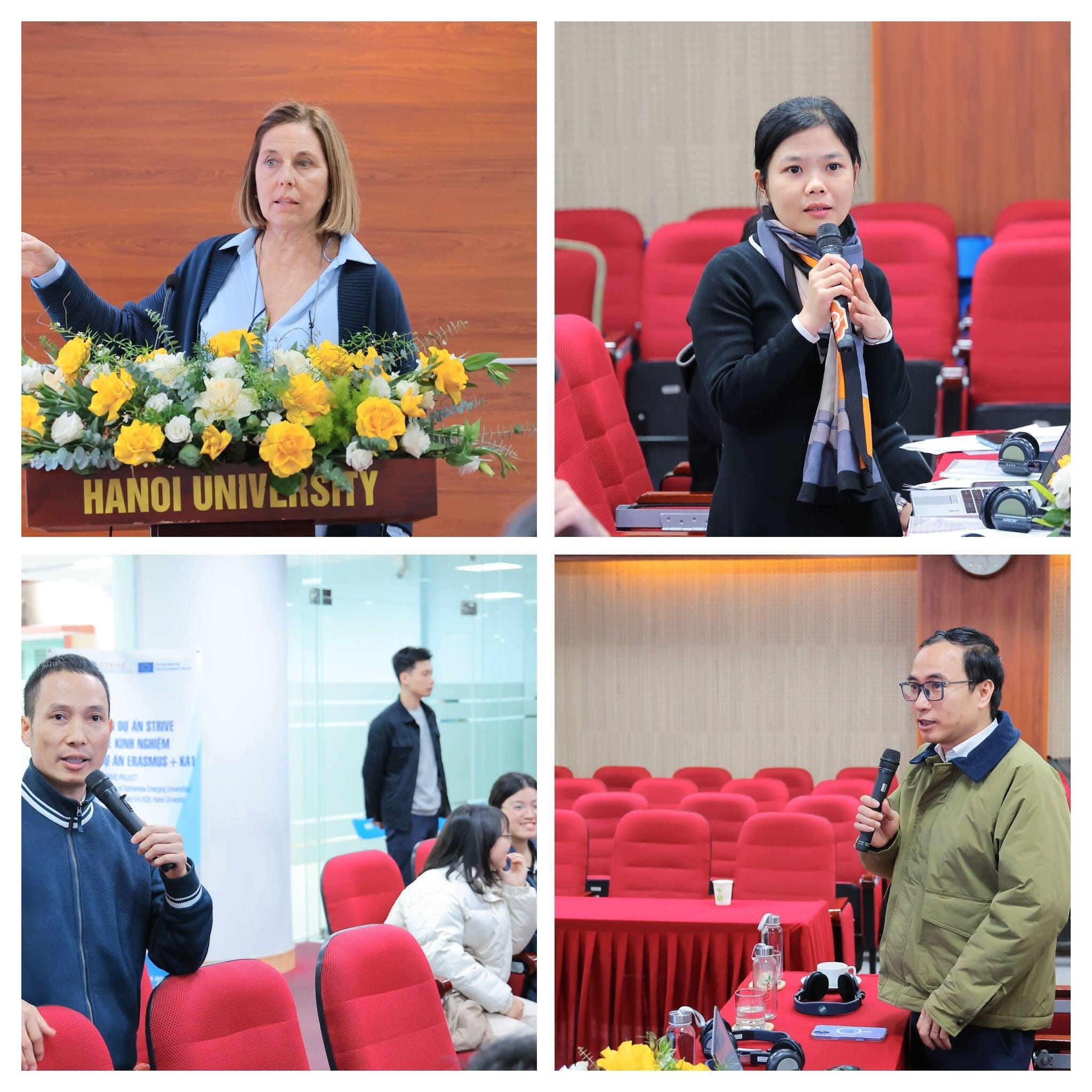 Notably, the discussion session also brought emotional perspectives from the direct beneficiaries—HANU students. Names like Ngo Thi Bich Phuong, Do Kim Oanh, Nguyen Tien Manh, and Nguyen Thi Van Anh shared their exchange learning journeys in Europe. From initial confusion about language and cultural barriers, they have matured, become more resilient, and become true "cultural ambassadors". These are the most practical "fruitful outcomes" that the STRIVE project and Erasmus+ aim for.