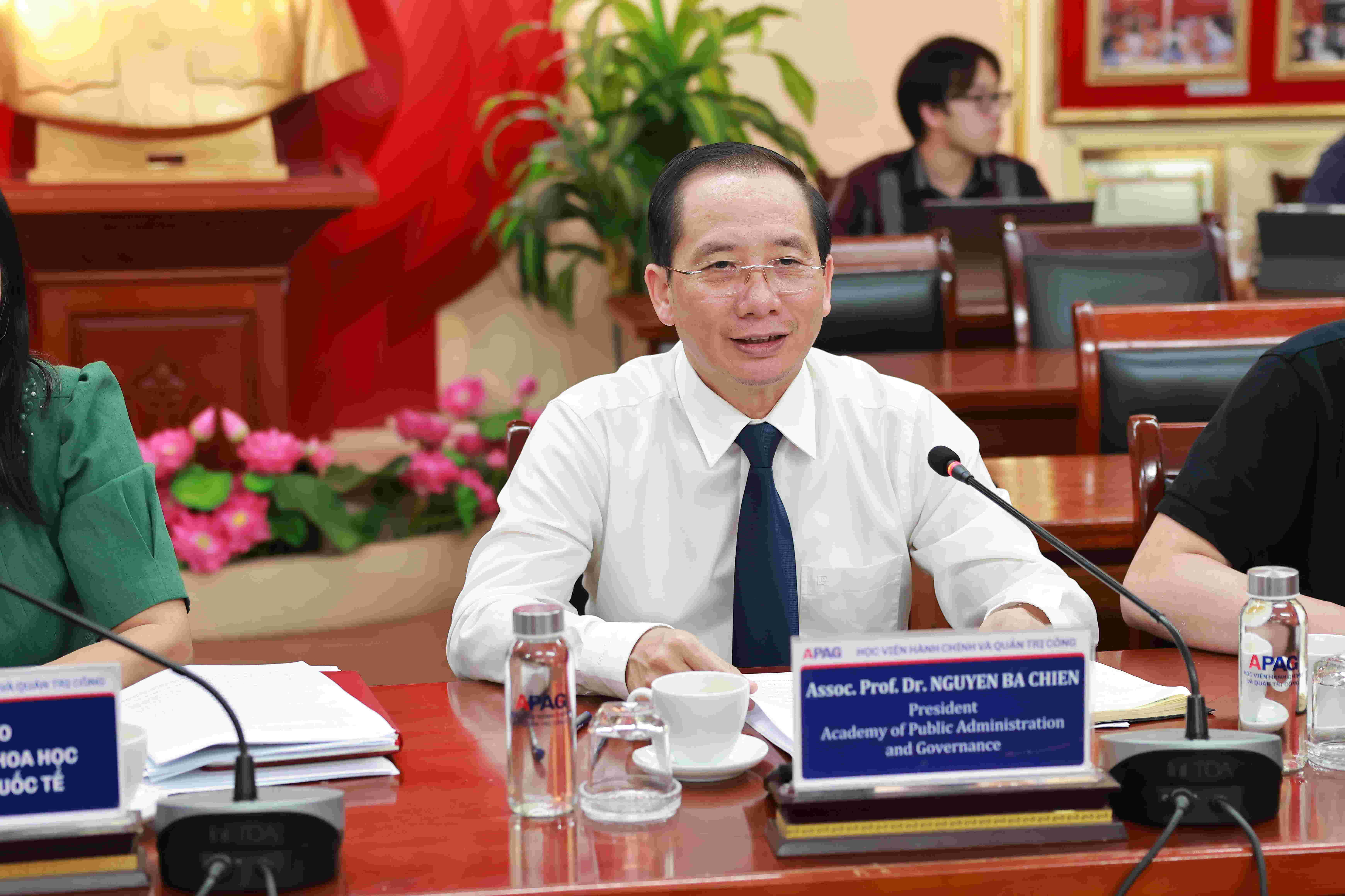 Assoc. Prof. Dr. Nguyen Ba Chien, President of the Academy of Public Administration and Governance, speaking at the working session