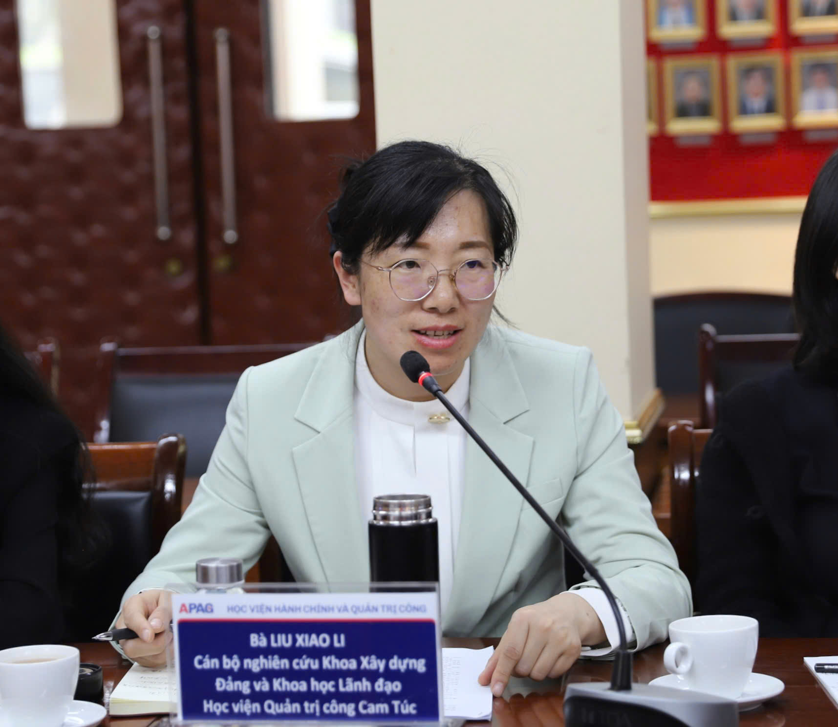 Ms. Liu Xiao-Li speaks at the working sessionIn addition to professional discussions, the Gansu delegation shared experiences in developing Master's programs in Party Building for APAG. APAG representatives also discussed curriculum design for students majoring in Party Building and State Management, teacher development, and promoting the Party's role within organizations.