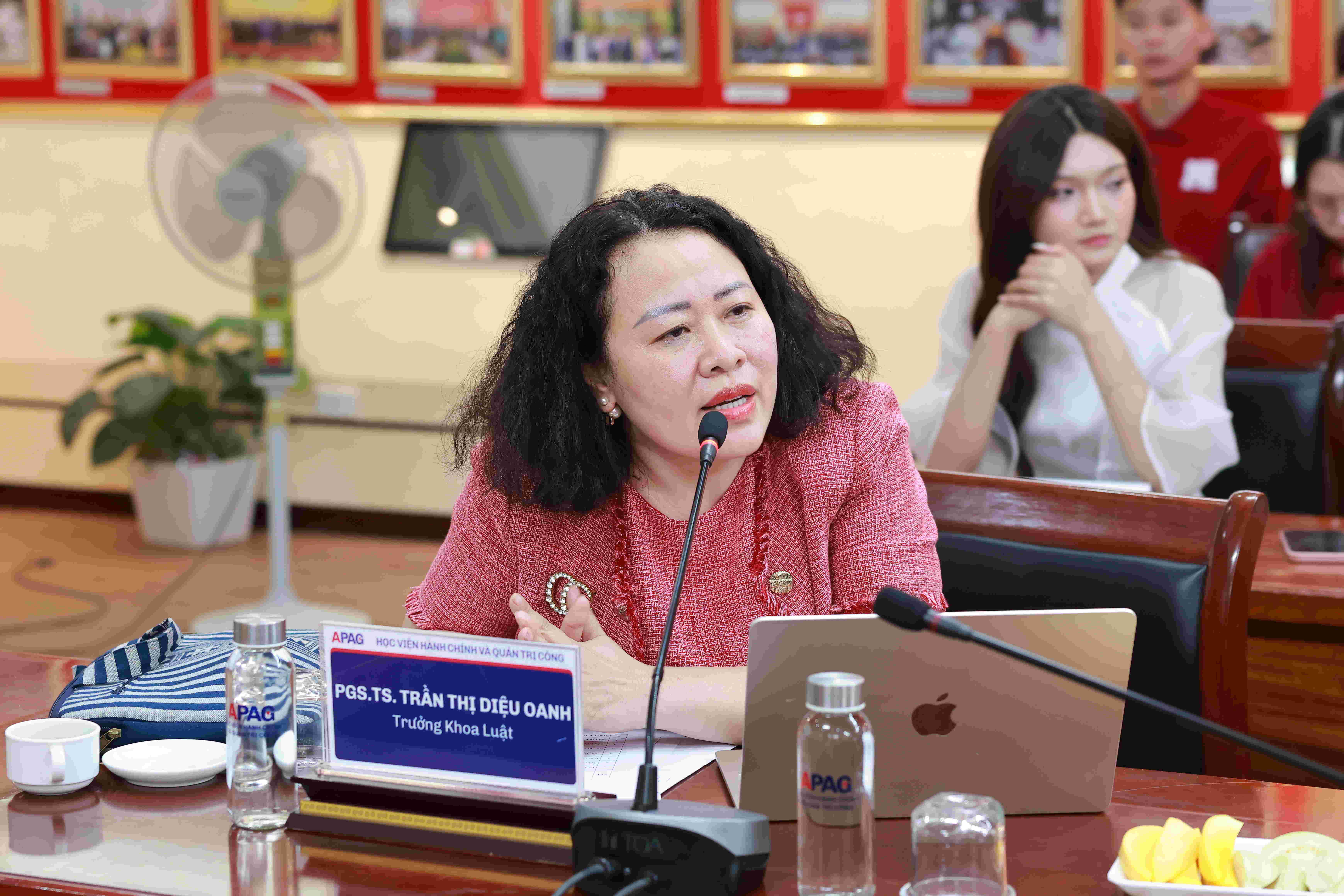 PGS.TS. Trần Thị Diệu Oanh, Trưởng Khoa Luật phát biểu kết luận buổi tọa đàmBuổi nói chuyện chuyên đề đã diễn ra thành công, mang lại nhiều giá trị học thuật và gợi mở thiết thực cho quá trình đổi mới giáo dục pháp luật tại Học viện Hành chính và Quản trị công, góp phần đáp ứng yêu cầu phát triển và hội nhập trong giai đoạn mới.
