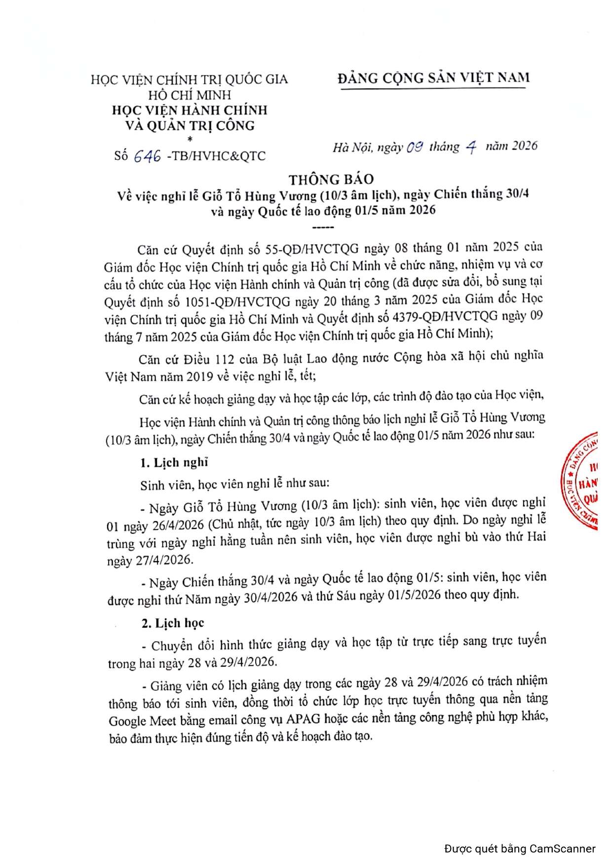 (apag.edu.vn) - Chiều ngày 08/4/2026, tại Hà Nội, Học viện Chính trị quốc gia Hồ Chí Minh tổ chức Lễ công bố quyết định bổ nhiệm Trợ lý, Thư ký đồng chí Ủy viên Bộ Chính trị, Giám đốc Học viện Chính trị quốc gia Hồ Chí Minh. Lễ công bố được kết nối trực tuyến đến 6 điểm cầu các Học viện trực thuộc. PGS.TS Đoàn Minh Huấn, Ủy viên Bộ Chính trị, Bí thư Đảng ủy, Giám đốc Học viện Chính trị quốc gia Hồ Chí Minh dự và chủ trì buổi Lễ.