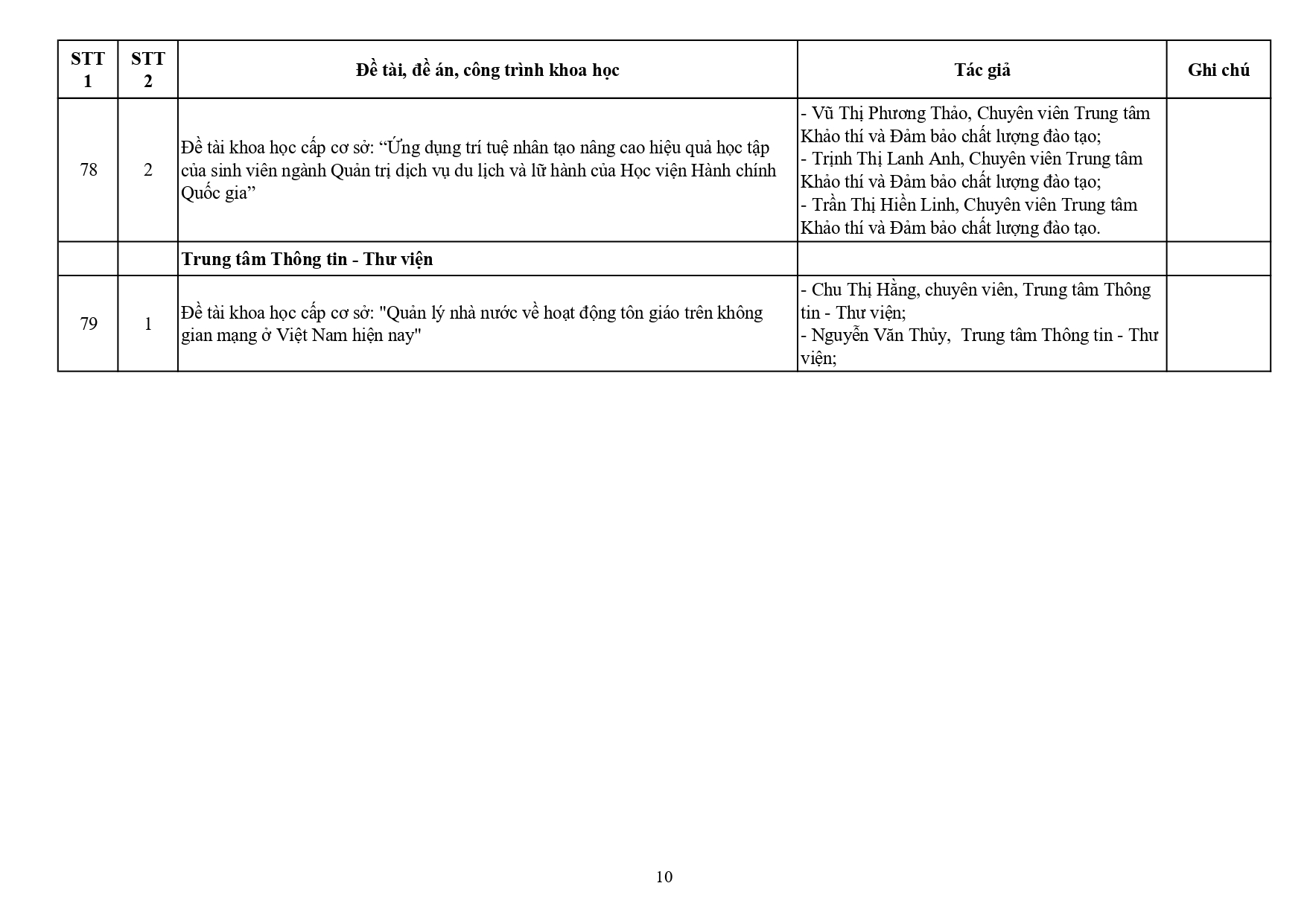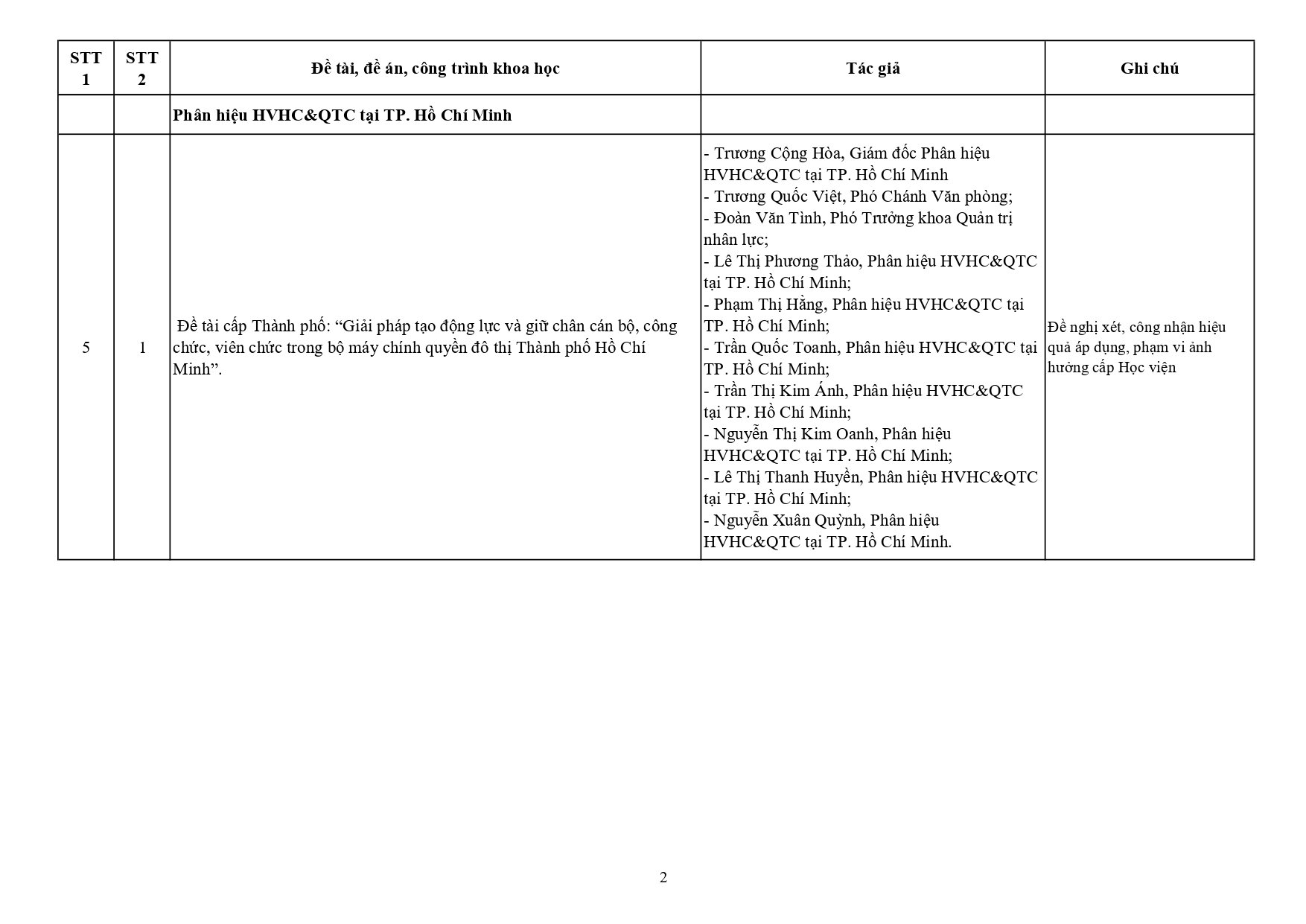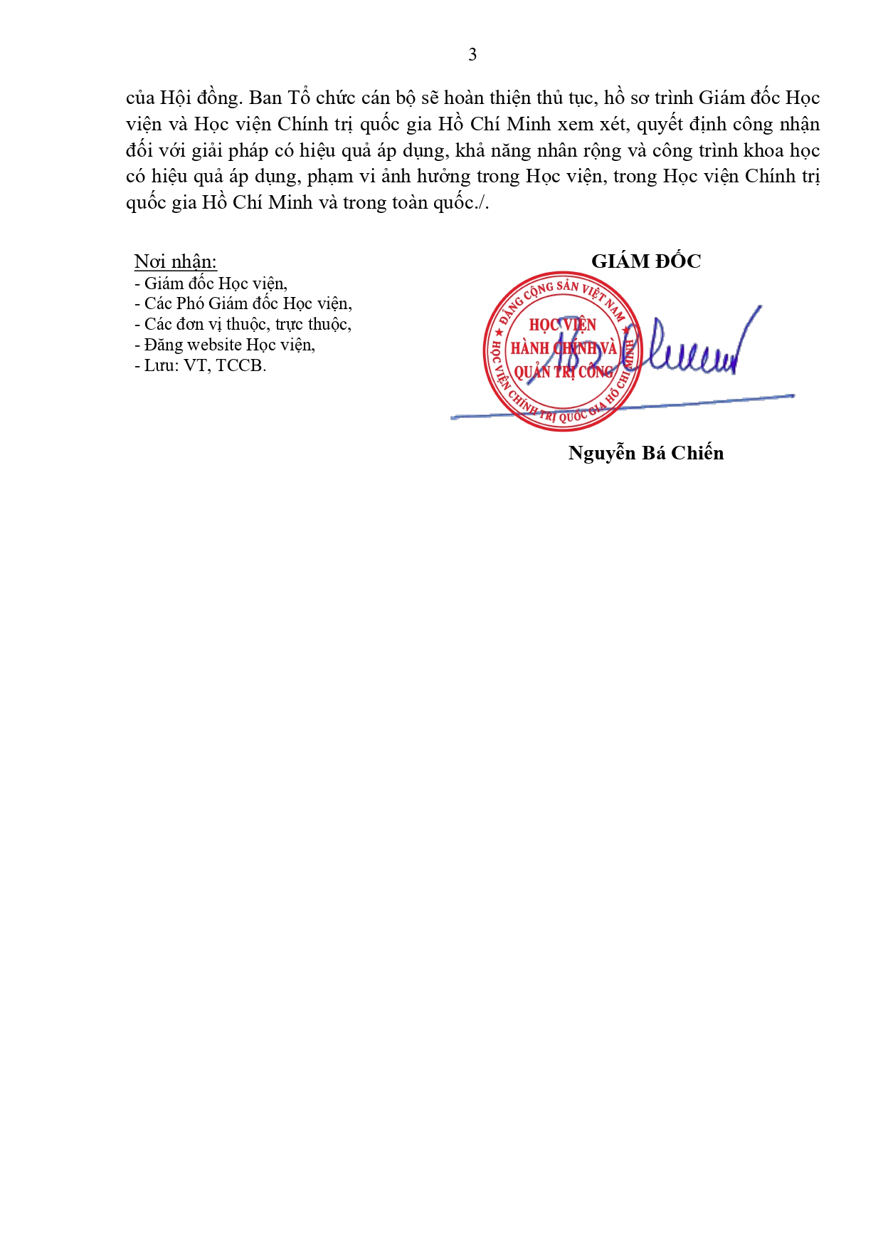 Thông báo về việc xét, công nhận hiệu quả áp dụng, khả năng nhân rộng của giải pháp/hiệu quả áp dụng, phạm vi ảnh hưởng của công trình khoa học