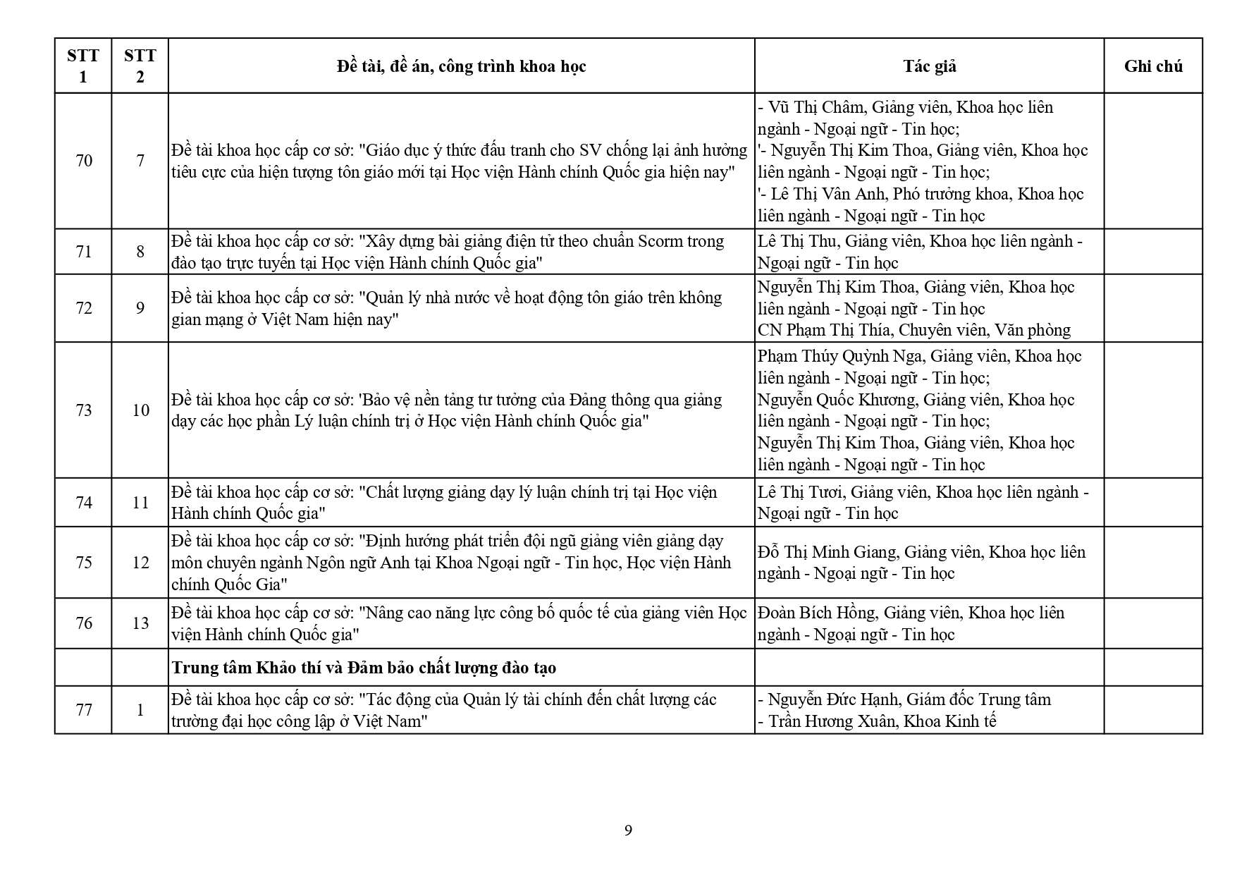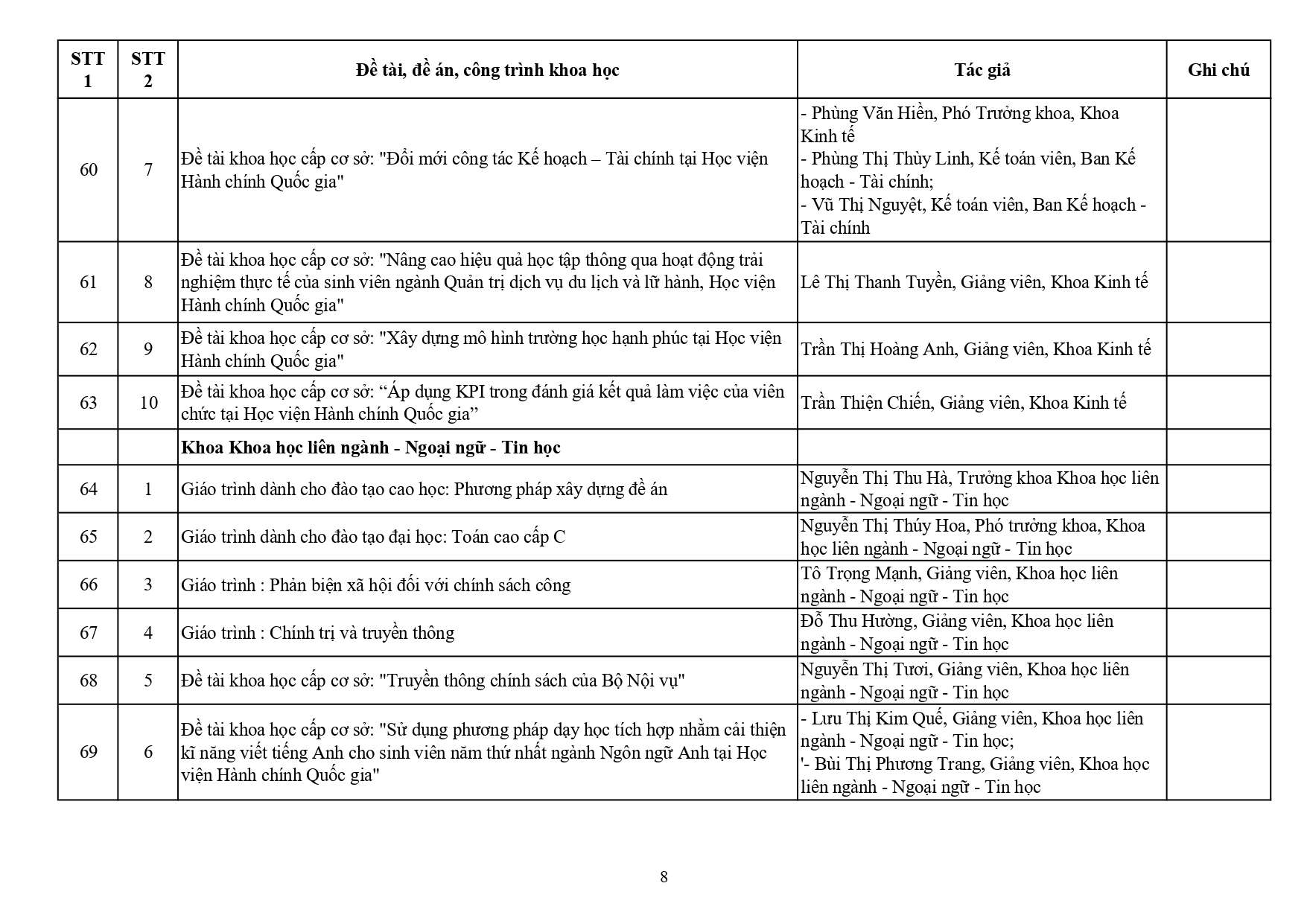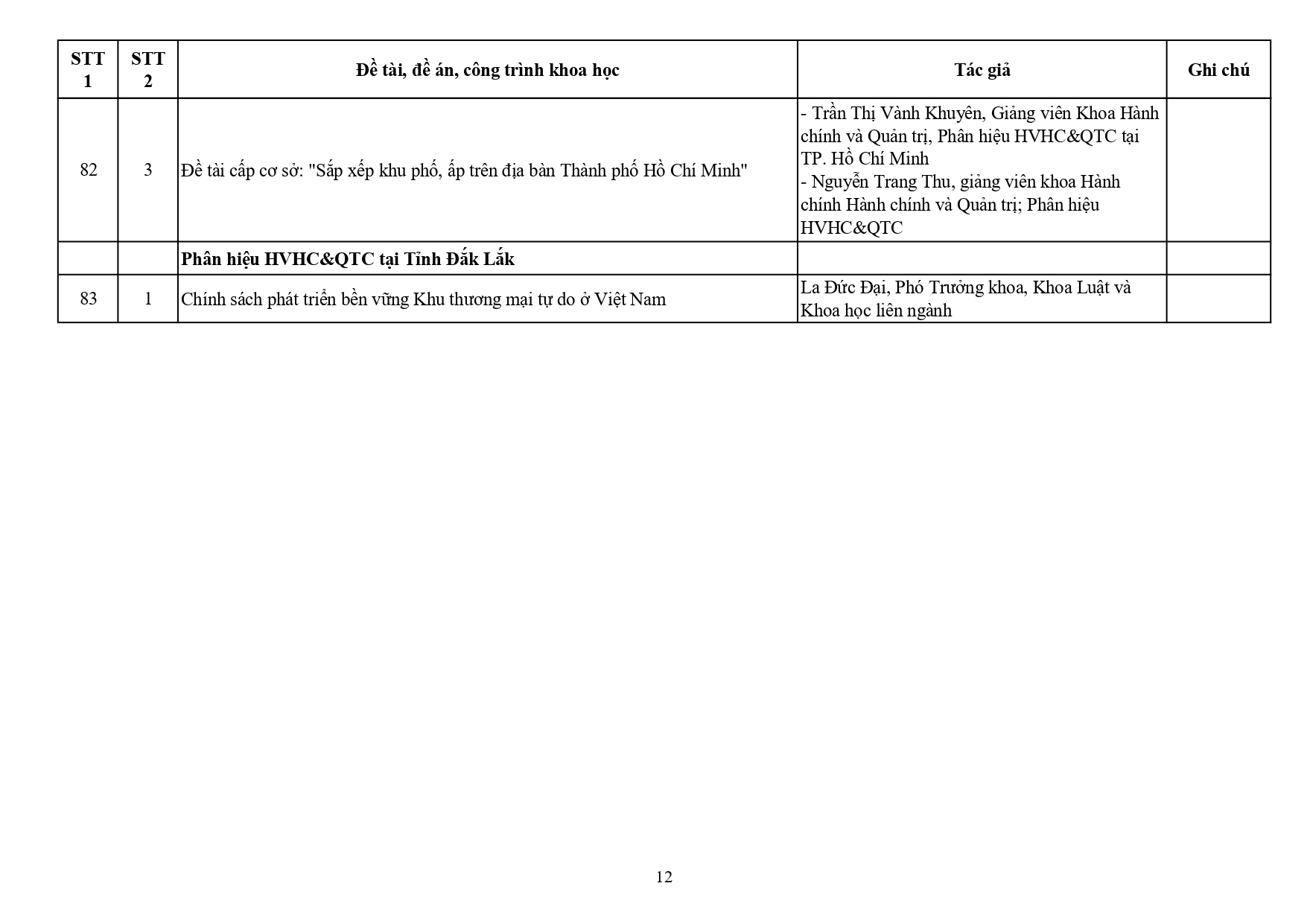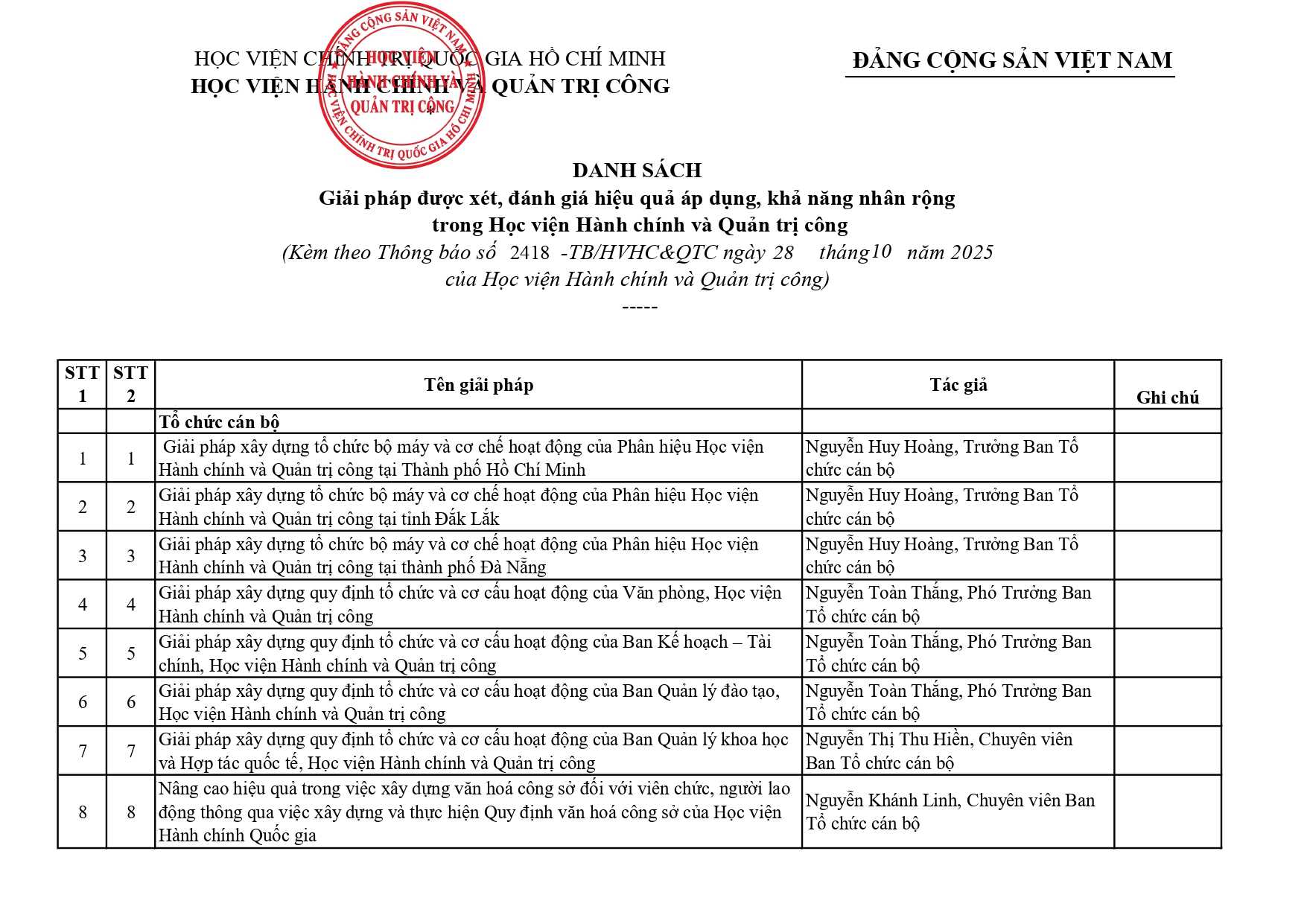 Thông báo về việc xét, công nhận hiệu quả áp dụng, khả năng nhân rộng của giải pháp/hiệu quả áp dụng, phạm vi ảnh hưởng của công trình khoa học