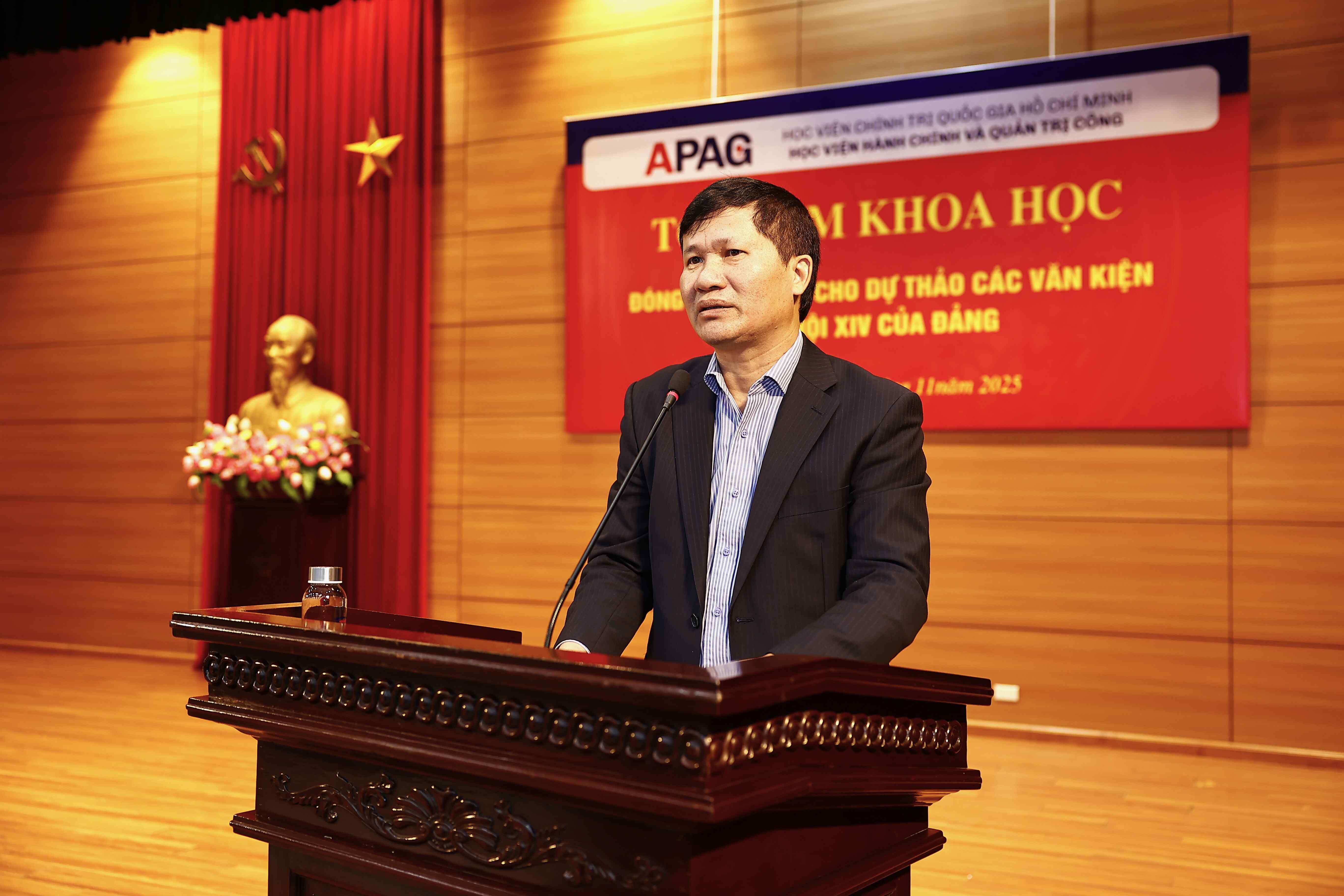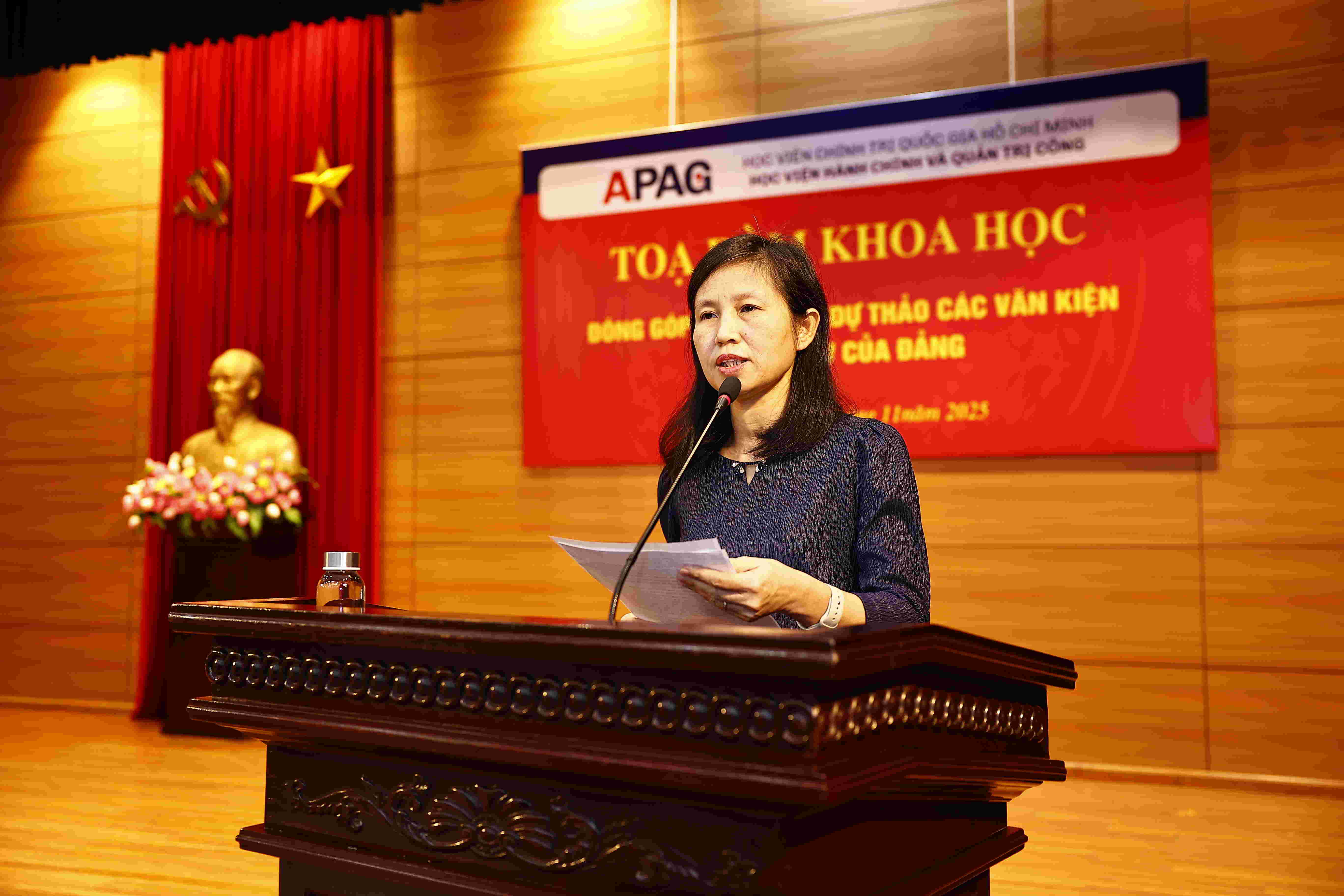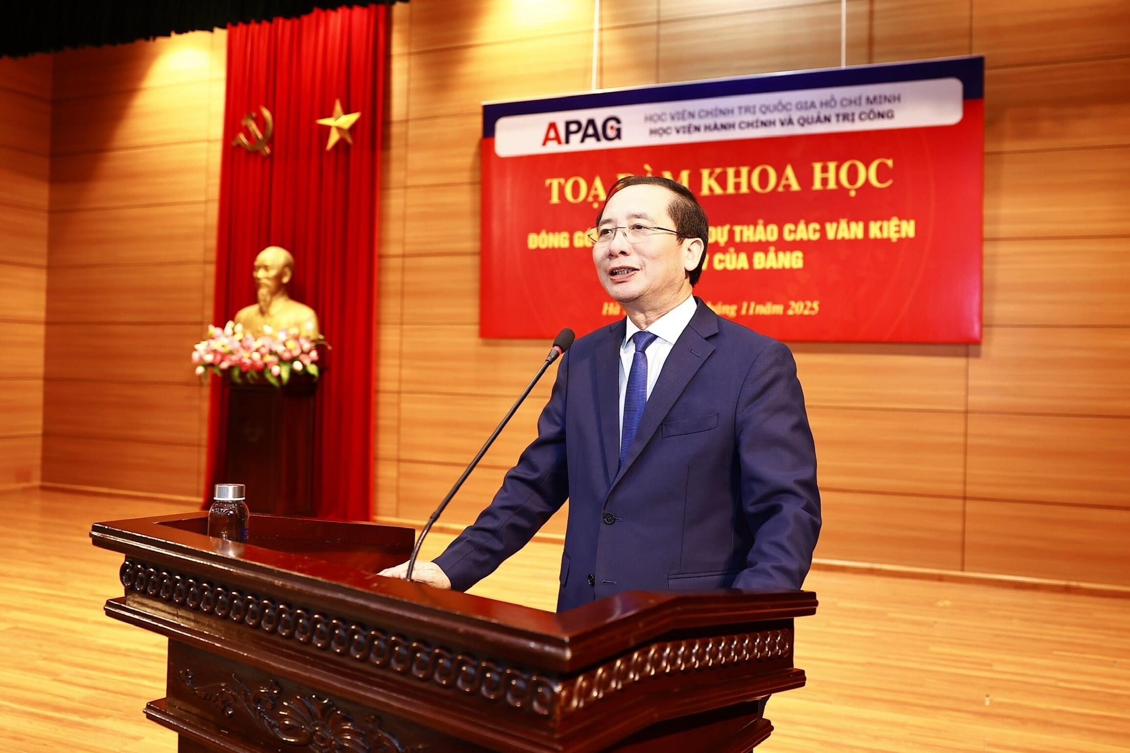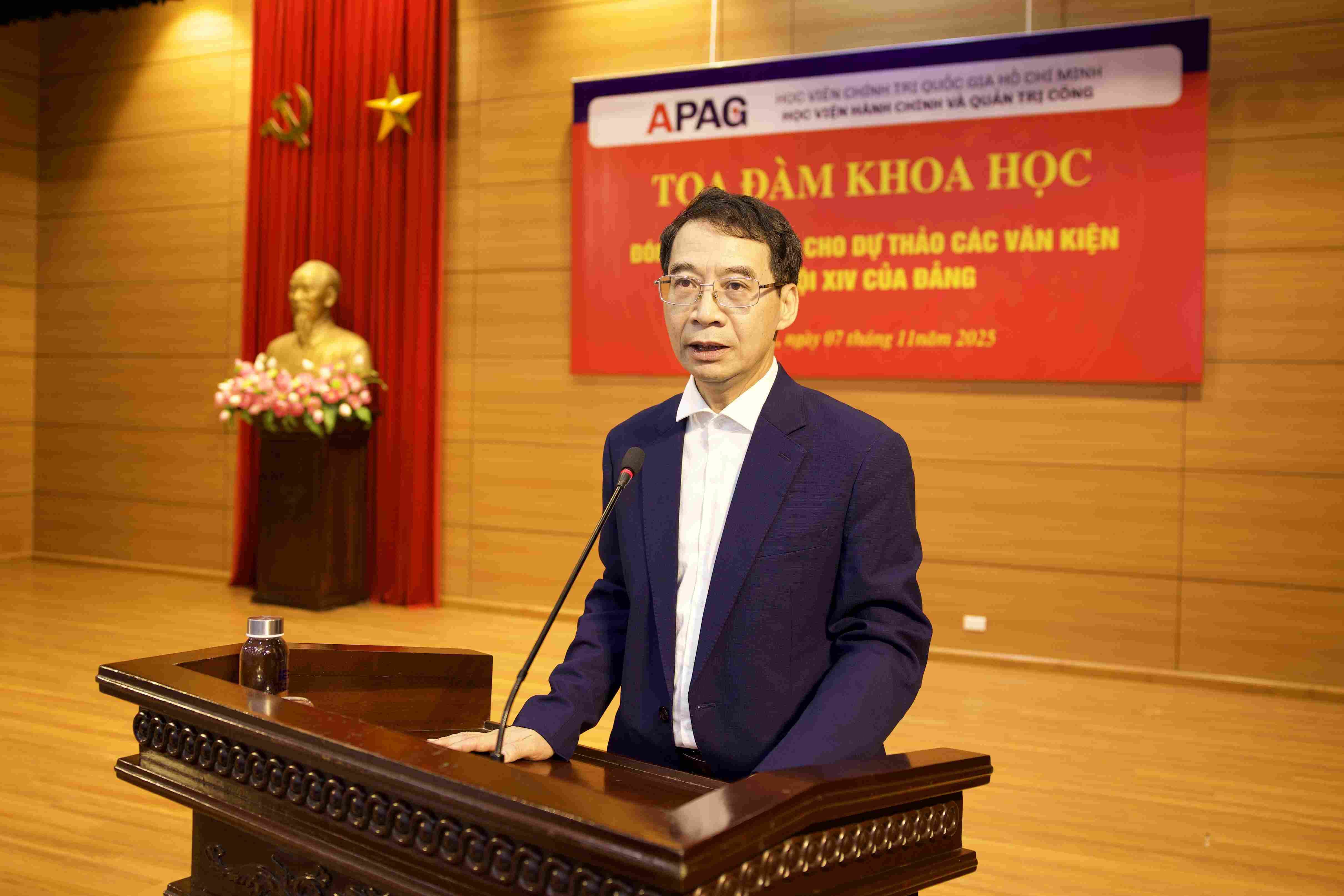 Phát biểu khai mạc Tọa đàm, PGS.TS. Nguyễn Bá Chiến, Bí thư Đảng ủy, Giám đốc Học viện khẳng định, Đại hội Đại biểu toàn quốc lần thứ XIV của Đảng, dự kiến tổ chức vào đầu năm 2026, là sự kiện chính trị đặc biệt quan trọng, đánh dấu bước phát triển mới của đất nước. Công tác xây dựng dự thảo các văn kiện trình Đại hội có ý nghĩa nền tảng, được tiến hành với tinh thần dân chủ, khoa học và phát huy trí tuệ tập thể theo Chỉ thị số 45-CT/TW ngày 14/4/2025 của Bộ Chính trị.