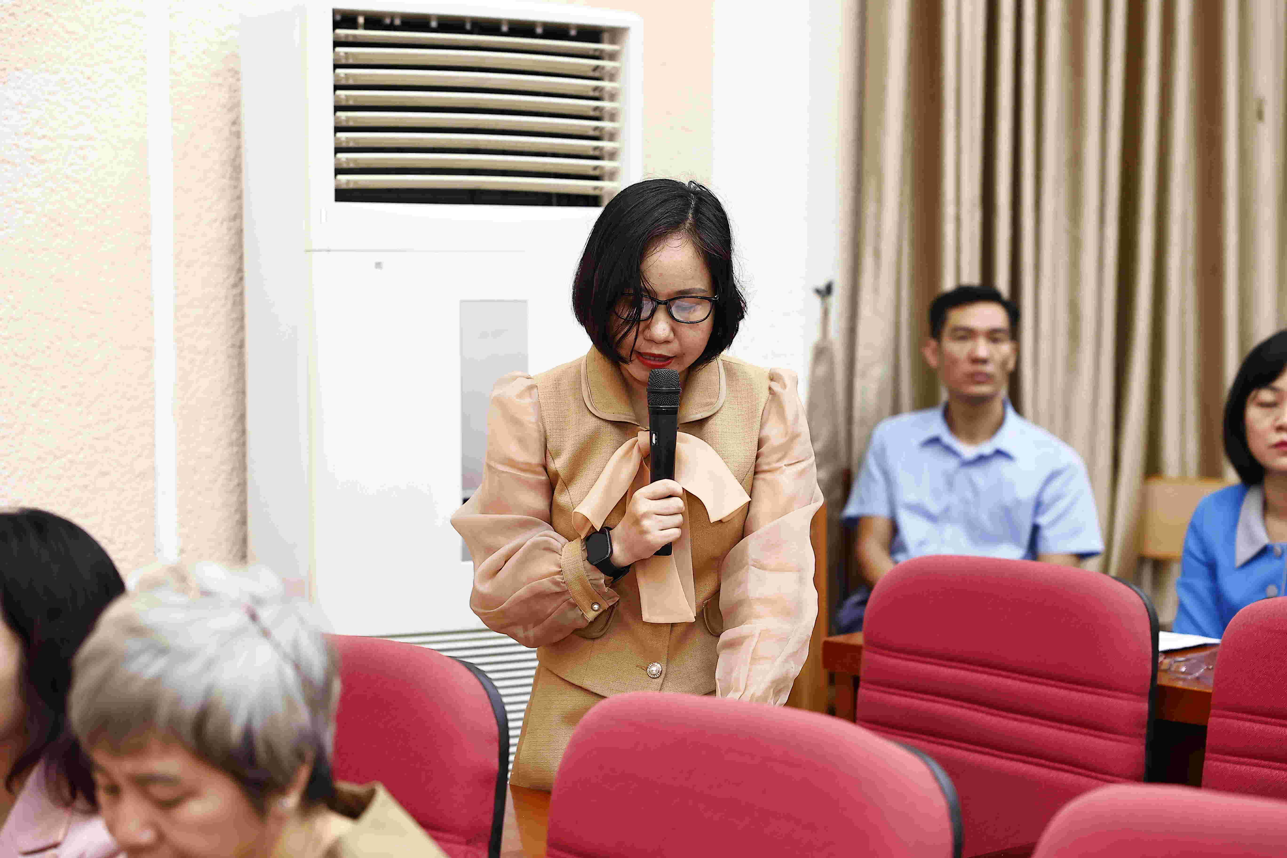 ThS. Tạ Thị Nhật Lệ, Chi bộ Khoa Lưu trữ và Quản trị văn phòng bày tỏ sự thống nhất cao với các nội dung trong Dự thảo Văn kiện Đại hội XIV của Đảng và tập trung góp ý về công tác phát triển Đảng trong đoàn viên, sinh viên tại các trường đại học.