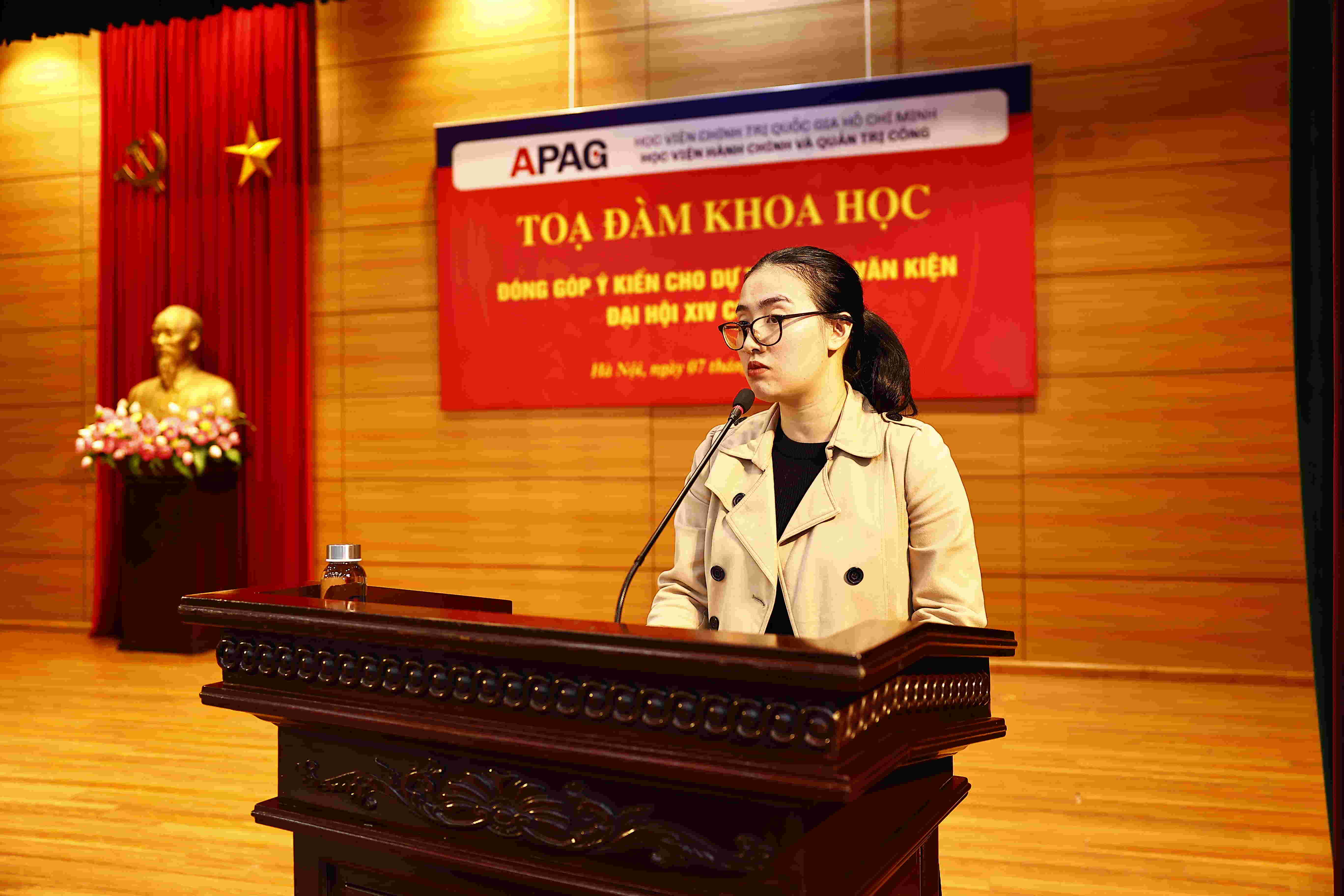 Hưởng ứng tinh thần đó, Học viện Hành chính và Quản trị công tổ chức Tọa đàm khoa học nhằm đóng góp ý kiến vào các dự thảo văn kiện Đại hội XIV. Hoạt động này thể hiện trách nhiệm chính trị, trí tuệ và sự chủ động của đội ngũ cán bộ, giảng viên, nhà khoa học và người lao động của Học viện; góp phần tuyên truyền, nâng cao nhận thức, thống nhất tư tưởng, đồng thời khẳng định vai trò của Học viện trong hệ thống Học viện Chính trị quốc gia Hồ Chí Minh.