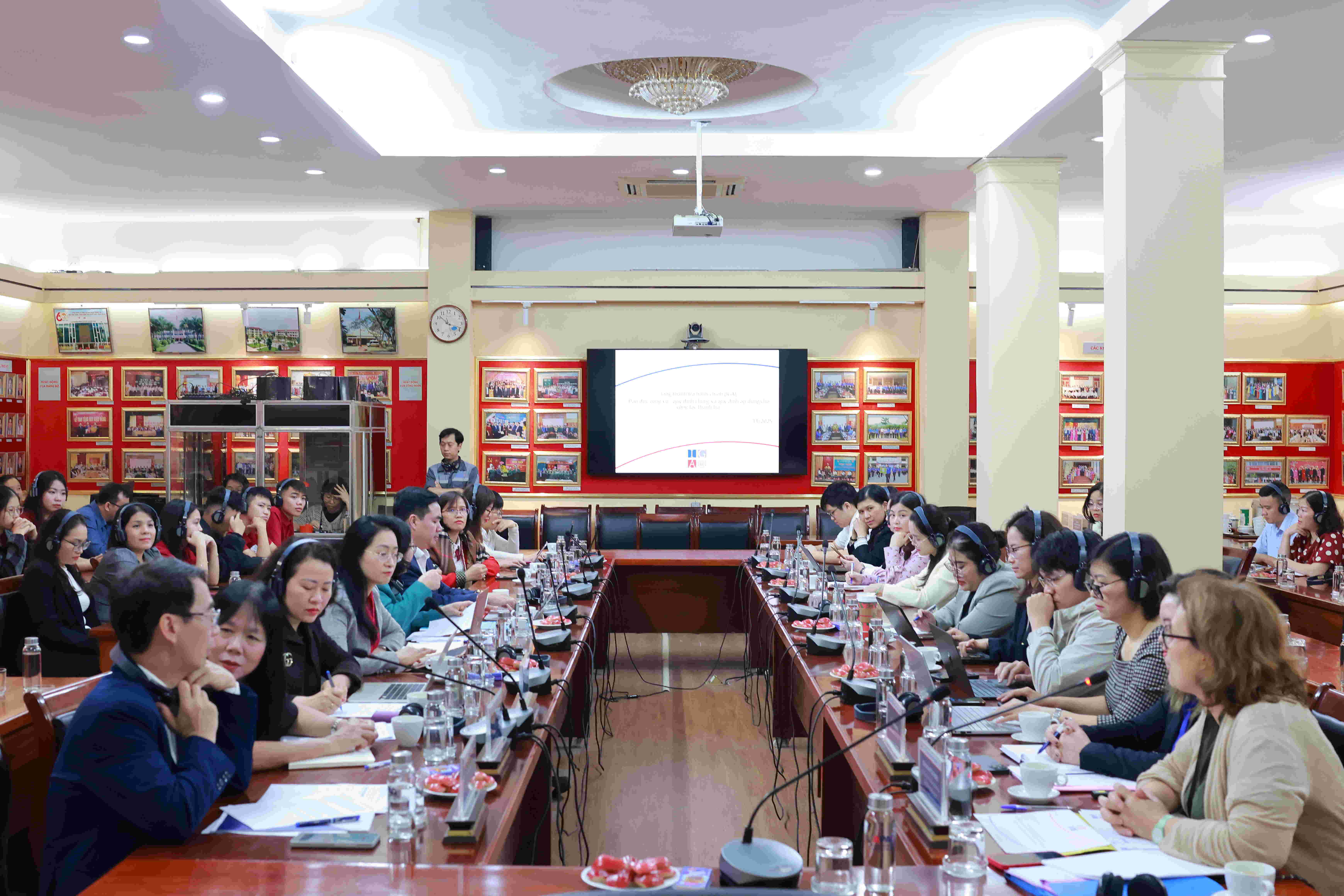 Toàn cảnh buổi Tọa đàm.Tọa đàm do PGS.TS. Lương Thanh Cường, Phó Giám đốc Học viện, bà Marion Pujau-Bosq, Phó Tổng Thanh tra hành chính Cộng hòa Pháp và PGS.TS. Trần Diệu Oanh, Trưởng Khoa Luật đồng chủ trì.