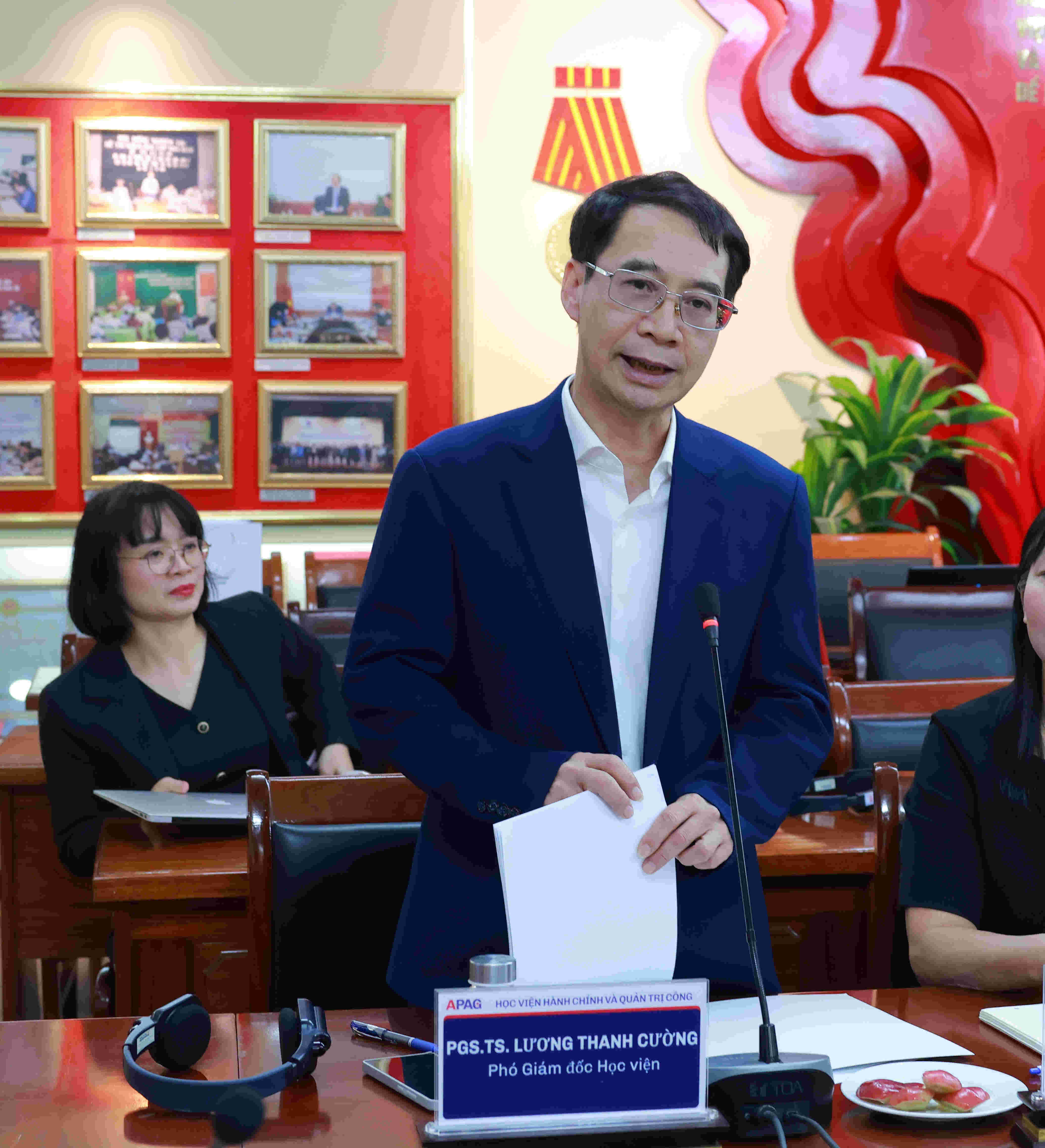 Phát biểu khai mạc tại Tọa đàm, PGS.TS. Lương Thanh Cường nhấn mạnh, đạo đức công vụ và liêm chính là nền tảng để xây dựng nền hành chính hiện đại, chuyên nghiệp. PGS.TS. Lương Thanh Cường khẳng định Học viện Hành chính và Quản trị công luôn coi trọng việc cập nhật kinh nghiệm quốc tế, nhất là các mô hình tiên tiến như của Cộng hòa Pháp, để phục vụ công tác nghiên cứu, đào tạo và hoàn thiện năng lực cho đội ngũ cán bộ, công chức Việt Nam. Phó Giám đốc Học viện bày tỏ mong muốn Tọa đàm sẽ mở ra nhiều gợi mở hữu ích và thúc đẩy hợp tác sâu rộng hơn giữa các cơ quan hai nước.