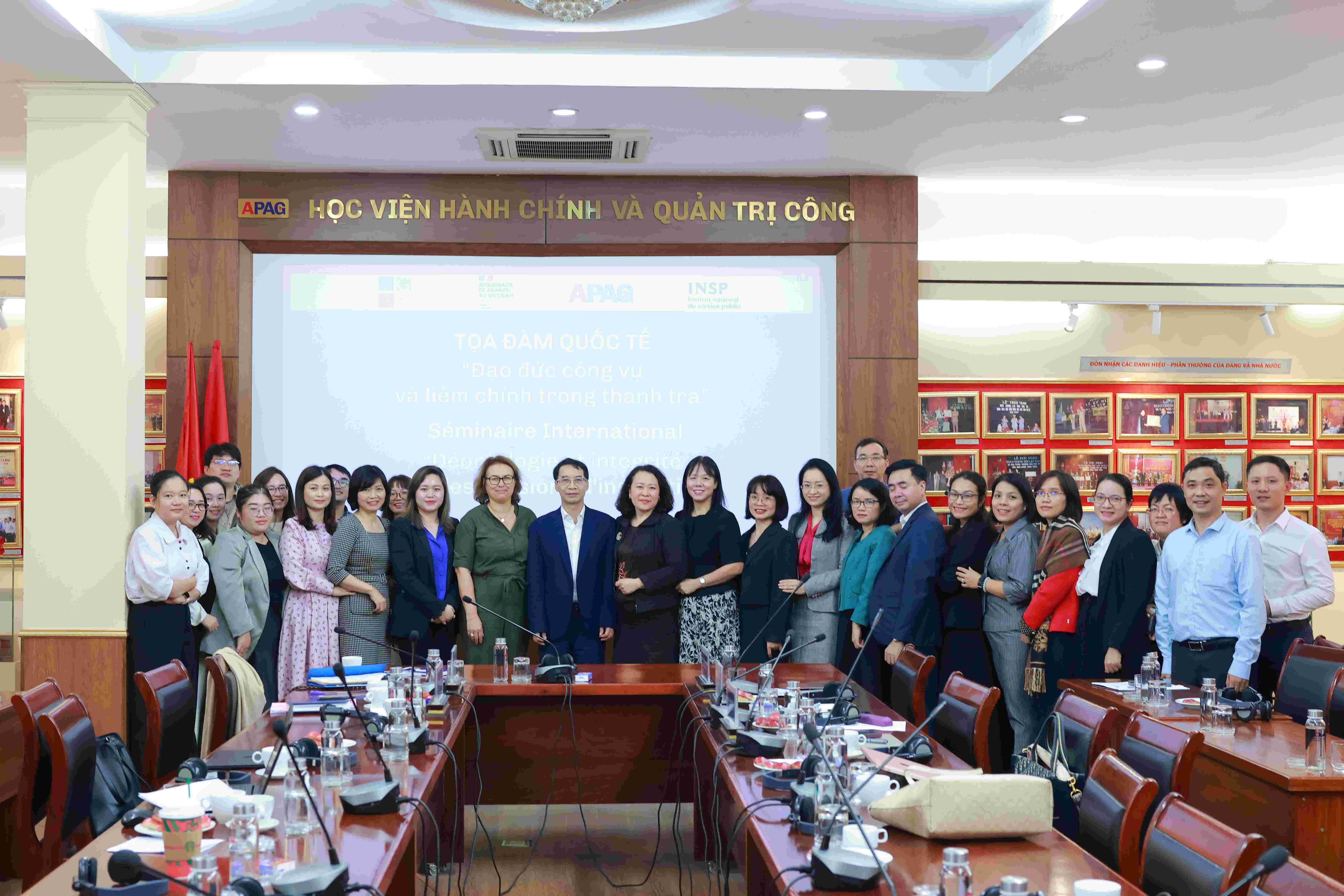 (apag.edu.vn) - Sáng 11/11/2025, tại Hà Nội, Học viện Hành chính và Quản trị công phối hợp với Tổng Thanh tra hành chính Pháp (IGA) và Đại sứ quán Pháp tại Việt Nam tổ chức Tọa đàm khoa học quốc tế với chủ đề “Đạo đức công vụ và liêm chính trong thanh tra”. Chương trình diễn ra nhân chuyến công tác tại Việt Nam của bà Marion Pujau-Bosq, Phó Tổng Thanh tra hành chính Cộng hòa Pháp.