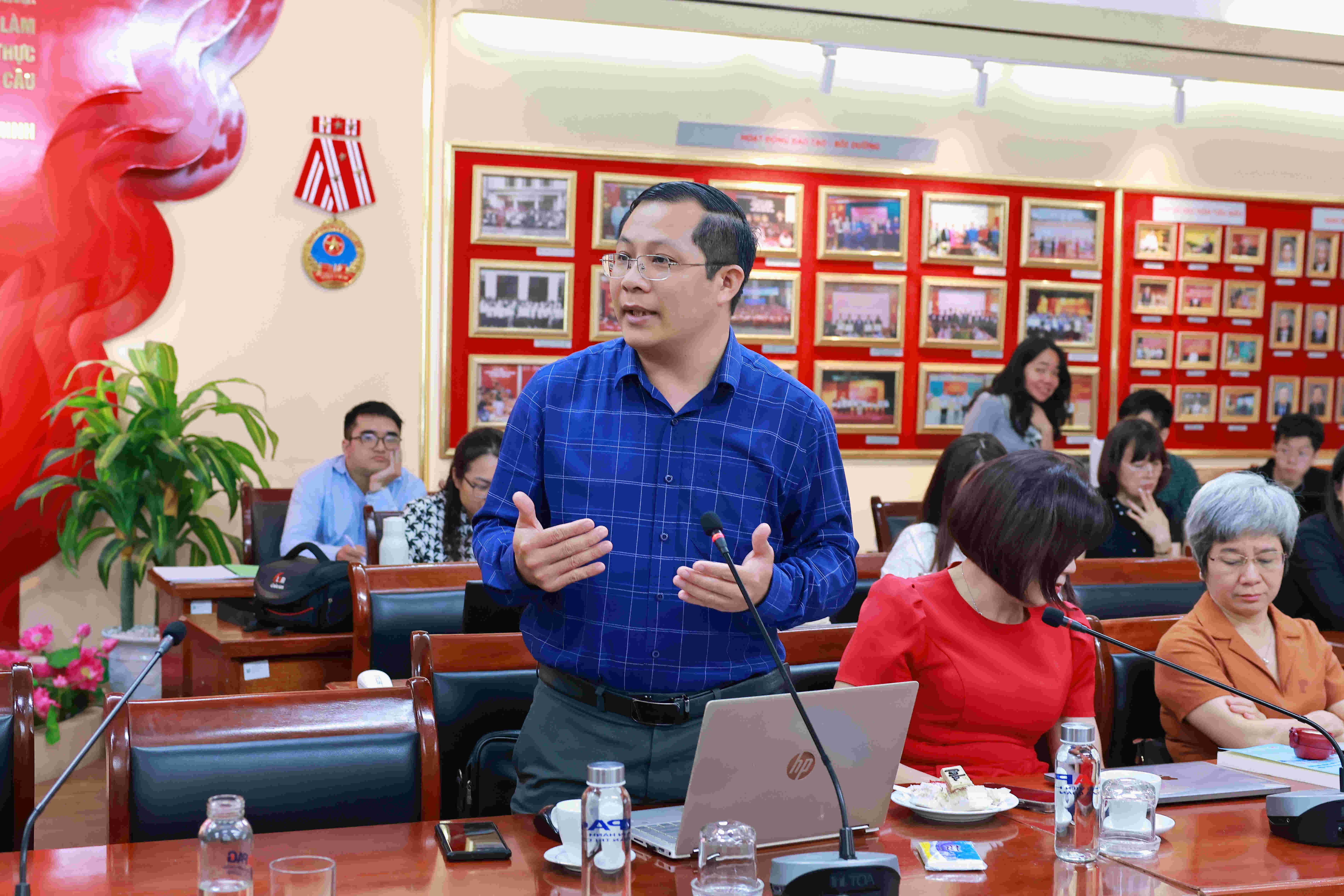 TS. Đoàn Văn Tình, Phó Trưởng khoa, Khoa Quản trị nhân lực phát biểu ý kiếnPhần thảo luận diễn ra sôi nổi với nhiều ý kiến trao đổi từ các đại biểu xoay quanh các nội dung như: công cụ triển khai quản trị hợp tác; phương thức xử lý xung đột lợi ích; sự khác biệt giữa khu vực công và khu vực tư; vai trò của yếu tố văn hóa, thể chế và người đứng đầu; cũng như yêu cầu thể chế hóa nhằm nâng cao hiệu quả phối hợp trong thực thi công vụ.