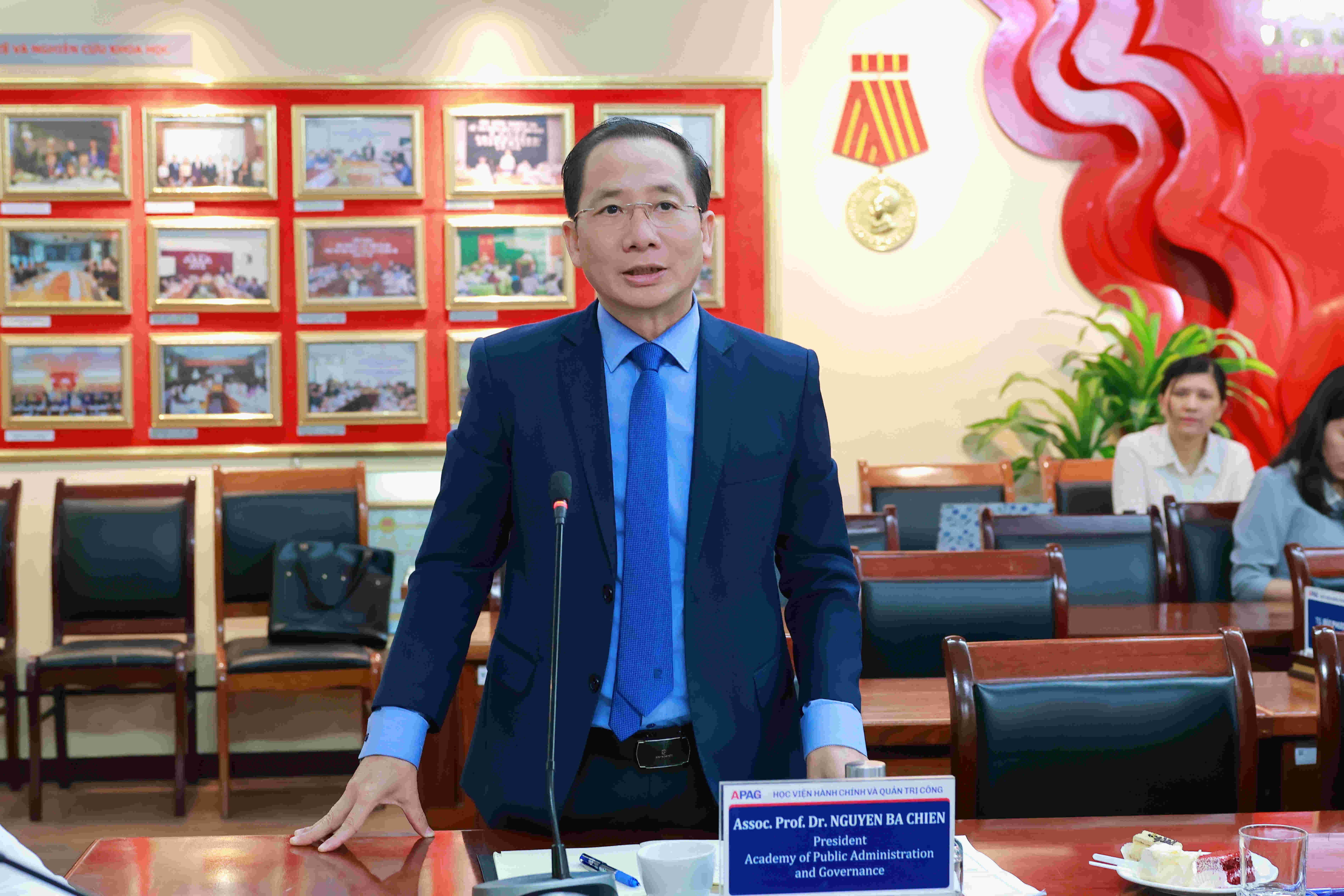 (apag.edu.vn) - Sáng ngày 30/3/2025, tại Hà Nội, Học viện Hành chính và Quản trị công tổ chức Tọa đàm khoa học quốc tế với chủ đề: “Quản trị hợp tác và giá trị tham khảo đối với đổi mới công vụ ở Việt Nam hiện nay”. PGS.TS. Nguyễn Bá Chiến, Giám đốc Học viện chủ trì Tọa đàm.