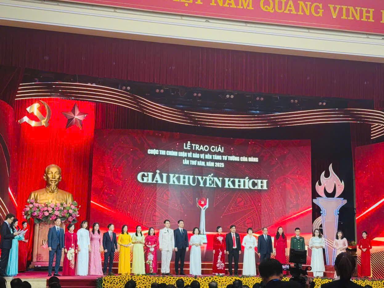 Tại Cuộc thi, Học viện Hành chính và Quản trị công đạt Giải Khuyến khích thể loại Tạp chí với tác phẩm “Đấu tranh phản bác các luận điệu phủ nhận vai trò lãnh đạo của Đảng Cộng sản Việt Nam trong kỷ nguyên mới” của nhóm tác giả ThS. Hoàng Diệu Linh - Khoa Luật và ThS. Phan Thị Hải Hà - Khoa Khoa học liên ngành - Ngoại ngữ - Tin học.