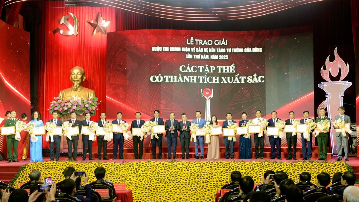 (apag.edu.vn) - Tối ngày 22/10/2025, tại Hà Nội, Ban Chỉ đạo Cuộc thi chính luận về bảo vệ nền tảng tư tưởng của Đảng lần thứ Năm, năm 2025 (Cuộc thi) trang trọng tổ chức Lễ trao giải nhằm biểu dương, tôn vinh các tác giả, nhóm tác giả có tác phẩm xuất sắc, các tập thể đạt thành tích cao. Đồng chí Lương Cường, Ủy viên Bộ Chính trị, Chủ tịch nước Cộng hoà xã hội chủ nghĩa Việt Nam tham dự buổi Lễ.